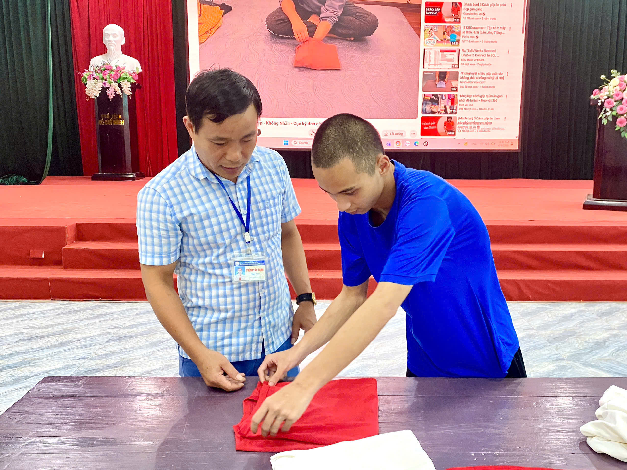 Ngay từ những phút đầu, không khí buổi sinh hoạt đã trở nên gần gũi và cởi mở. Không còn khoảng cách giữa “người hướng dẫn” và “người học”, mà là sự đồng hành, chia sẻ và khích lệ. Người bệnh được trực tiếp quan sát, thực hành từng bước gấp chăn, xếp quần áo sao cho gọn gàng, ngăn nắp. Những thao tác tưởng chừng đơn giản nhưng lại đòi hỏi sự kiên nhẫn, ghi nhớ và phối hợp – chính là những yếu tố quan trọng trong quá trình phục hồi chức năng tâm lý – xã hội.