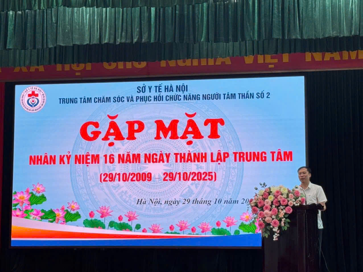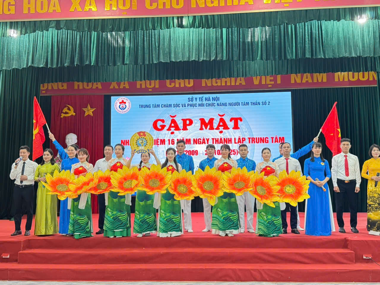 Trong ngày 29/10/2024, Trung tâm Chăm sóc và Phục hồi chức năng người tâm thần số 2 Hà Nội tổ chức gặp mặt kỷ niệm 16 năm Ngày thành lập Trung tâm (29/10/2009 – 29/10/2025). Đây là dịp để tập thể cán bộ, viên chức và người lao động cùng nhau ôn lại chặng đường hình thành, phát triển và những thành tựu đã đạt được trong suốt 16 năm qua.